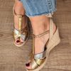 sandalias cuña mujer piel